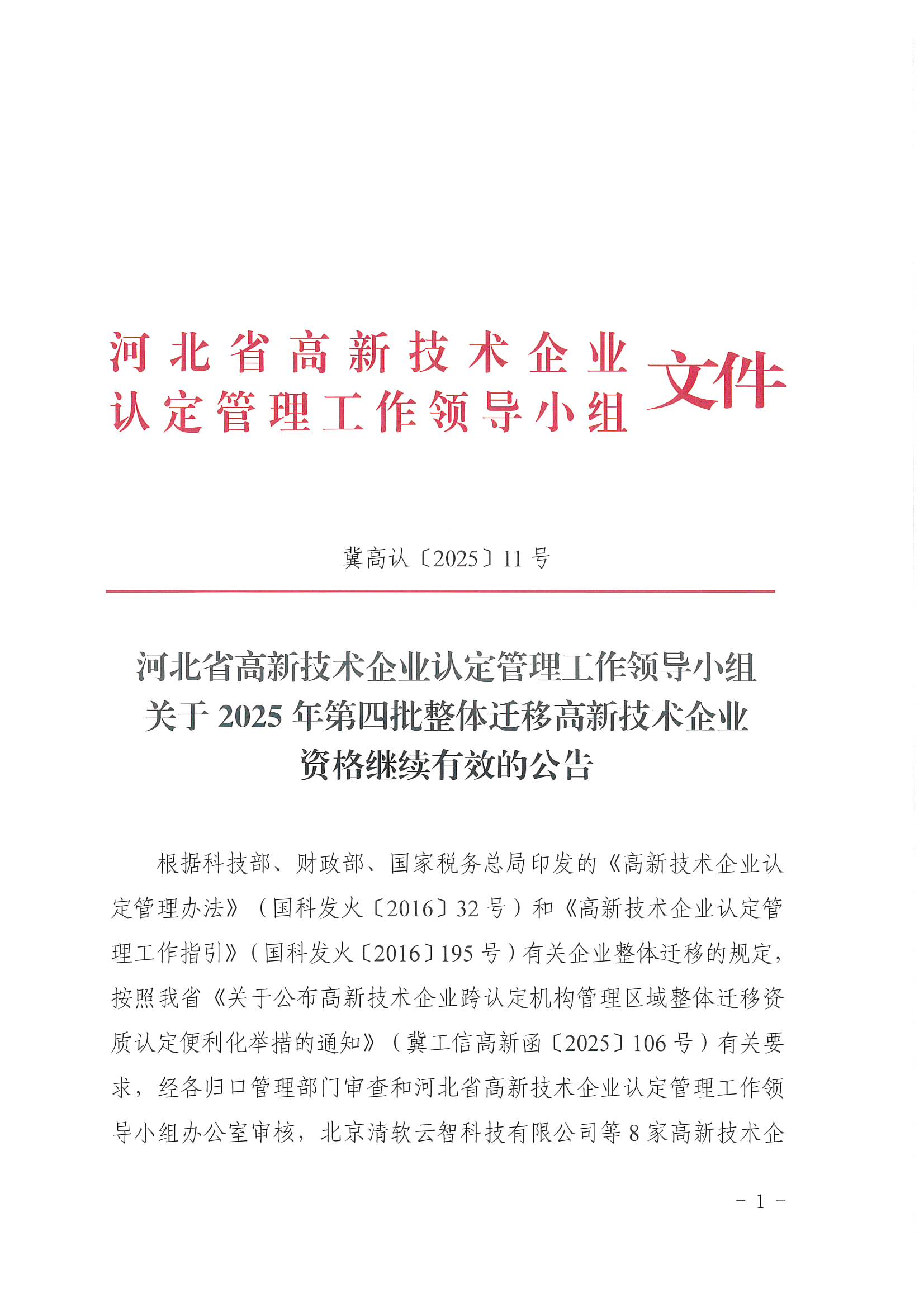 關(guān)于2025年第四批整體遷移高新技術(shù)企業(yè)資格繼續(xù)有效的公告