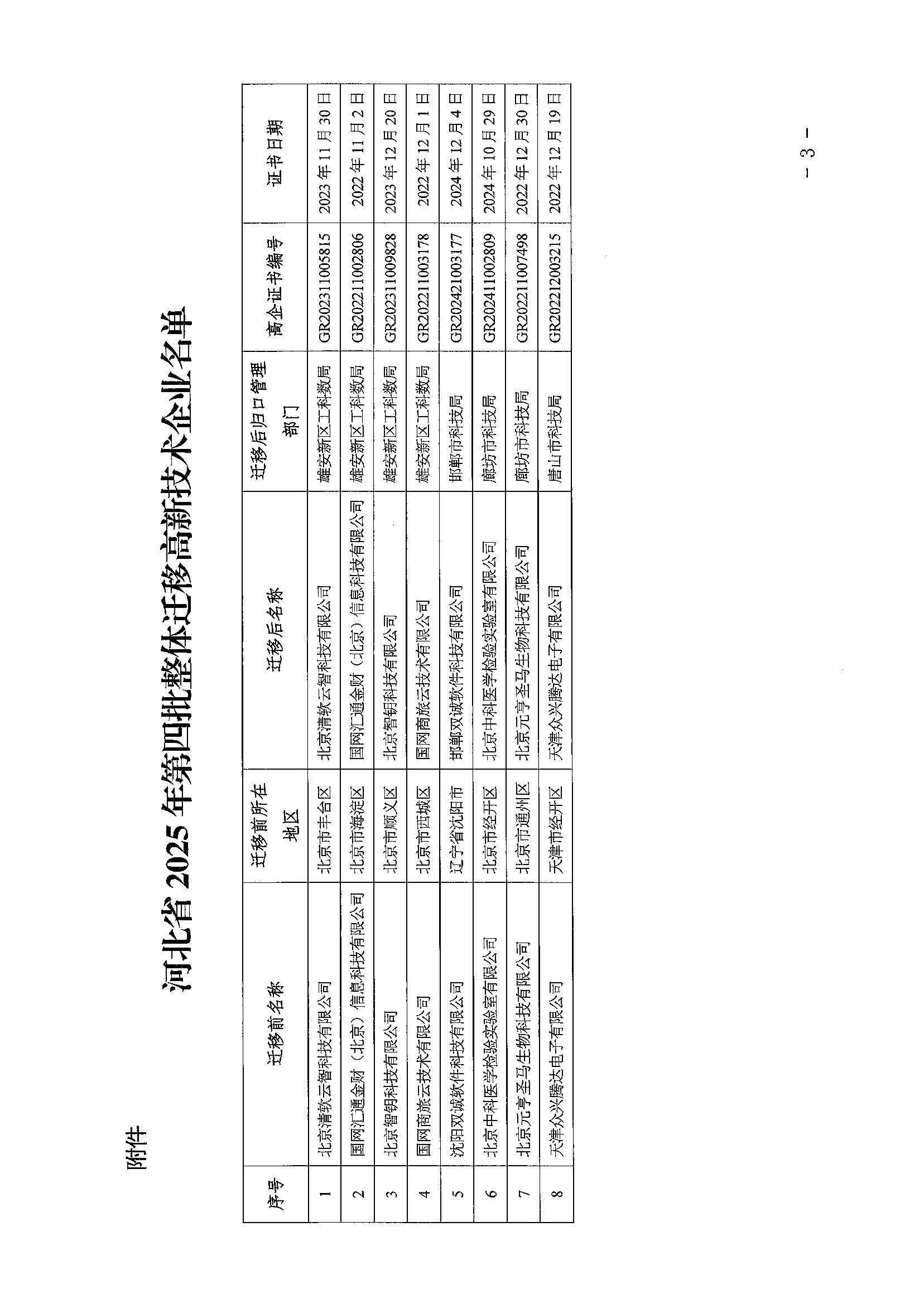 關(guān)于公布河北省2025年第三批更名及重大變化高新技術(shù)企業(yè)的通知